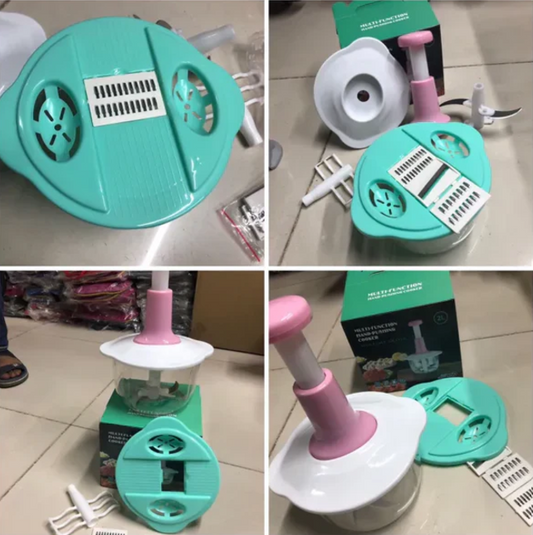 Multifunctional Manual Food Chopper – 2L Hand-Push Vegetable & Meat Cutter with 3 Grater Blades