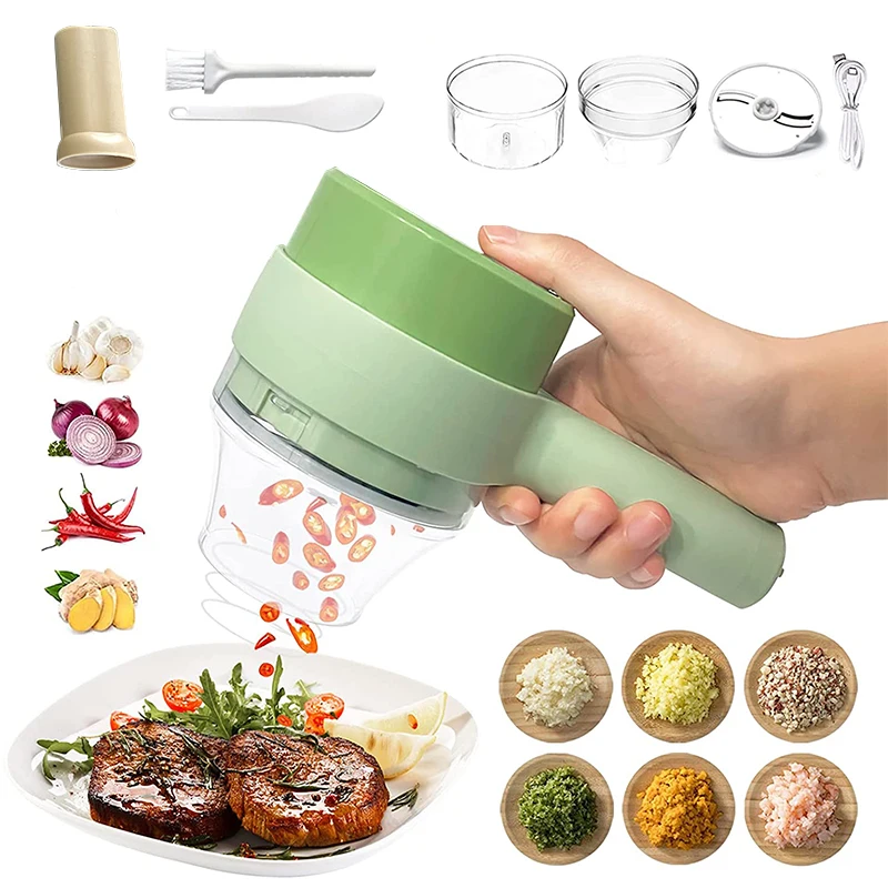 4 In1 Hand Held Electric Vegetable Cutter Slicer Multifunctional Garlic Mud Masher Food Chopper Vegetable Crusher Kitchen Tools